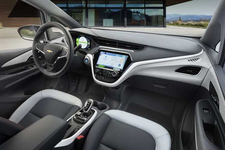 3、内饰方面,雪佛兰Bolt配备了“家族通用的”三辐式方向盘、全液晶仪表盘、中控台10.2英寸触屏、电子挡把等,车机系统中还集成了安吉星4G LTE/Wi-Fi热点、MyLink系统等;