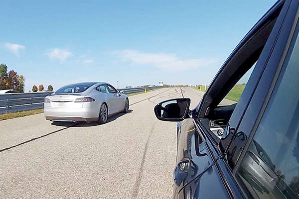 特斯拉Model S P85良好的扭矩响应,让宝马M5在起步就只有吃灰的份儿