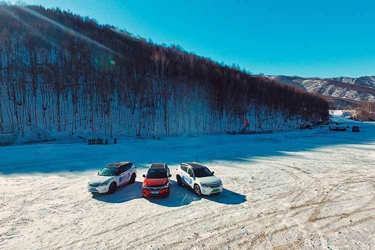车主们滑雪,宋EV300不惧严寒,四百里奔袭,同样能在雪地里玩起来,在拍摄之余,小编驾车在雪地路面驰骋,如履平地。