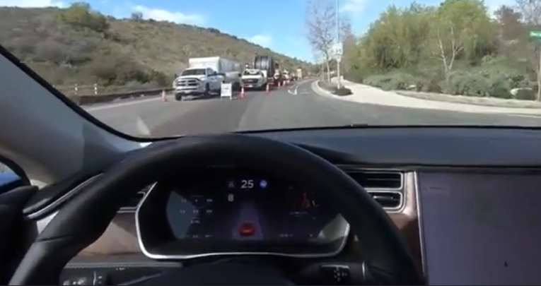 从上面的视频中,你可以看到Autopilot升级后的改进。此前特斯拉车辆在经过施工区域的时候,Autopilot系统会要求司机接管车辆控制,因为在道路施工区域分道线并不清晰。而在升级之后,Autopilot不再需要司机接管车辆,并且顺利通过了施工路段。