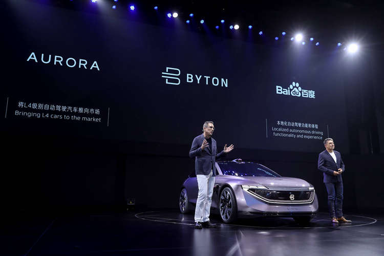 2. 前脸造型能够看到明显的拜腾汽车家族风格,拜腾智能表情在新车上也有升级(车头、车尾均有运用)。放置在车顶的自动驾驶传感器硬件是新车的一大亮点,官方称这种设计策略为“让智能看得见”;