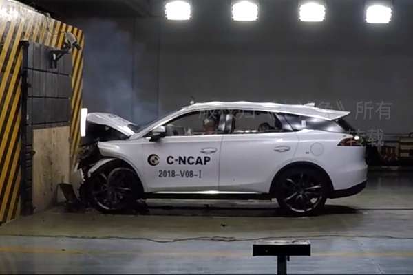 电动小侦探获悉:比亚迪牌唐DM将于2018年10月16日至10月18日期间进行C-NCAP的碰撞试验及鞭打试验。10月16日下午,比亚迪牌唐DM以50公里/时的时速,进行了100%正面刚性壁障碰撞试验。从碰撞过后的照片可以看出以下4点: