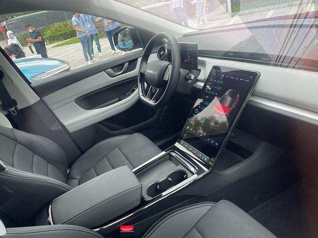 除了方向盘、10.25英寸的仪表盘和14.8英寸的多媒体液晶屏外,在视觉上并没有太多杂乱的元素,并且空调出风口也与中控台融为一体。