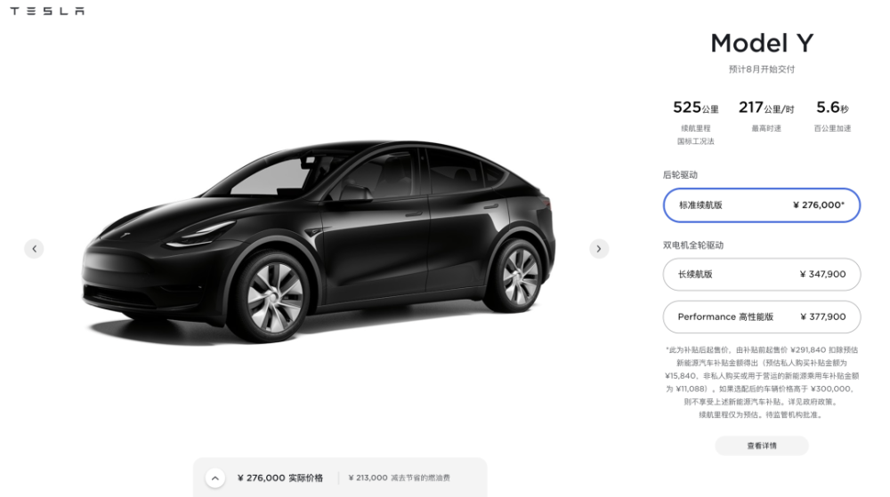 其次,按照今年的补贴政策,Model Y标准续航版只要价格进入30万就可以拿到国家补贴,也就是说,实际上Model Y标准续航版的补贴前售价为29.184万元,国家补贴15,840元。