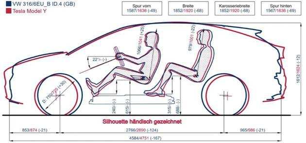 虽然特斯拉Model Y定位于中型SUV,但从早前曝光的大众内部对标文件来看,特斯拉Model Y的乘坐空间却与定位于紧凑型的大众ID.4基本持平。