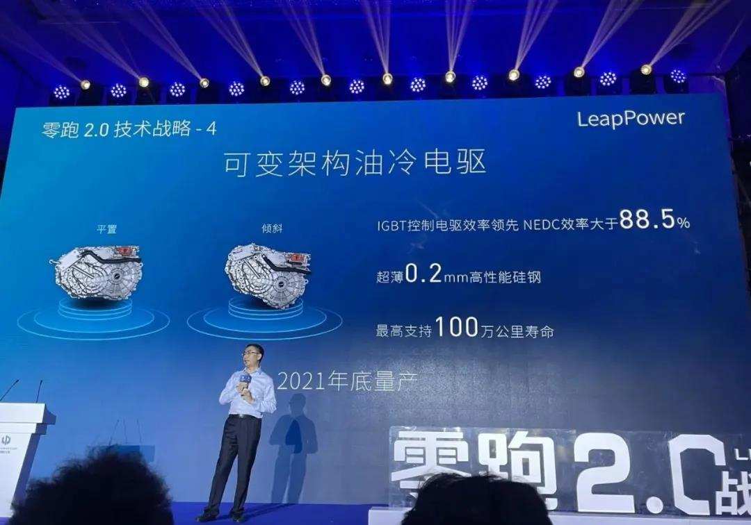 在动力总成上,零跑表示将于2021年底量产可变架构油冷电驱,官方称其IGBT控制电驱的NEDC效率大于88.5%,且其最高支持100万公里寿命。