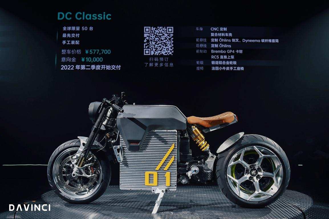 DC Classic 为DC系列高阶极简改装版本,全球限量 50 台,纯手工装配,每一台都拥有标志着它独特的收藏编号。这一版本配备Öhlins 前叉、Dyneema 定制碳纤维套筒、Brembo GP4 卡钳、RCS 系列直推上泵、以及法国小牛皮定制座椅。车身大量CNC 定制零件加持,整车手工细腻装配而成。DC Classic中国市场整车价格:577,700元人民币,预订金:10,000元人民币,将于2022 年第二季度率先开始交付。