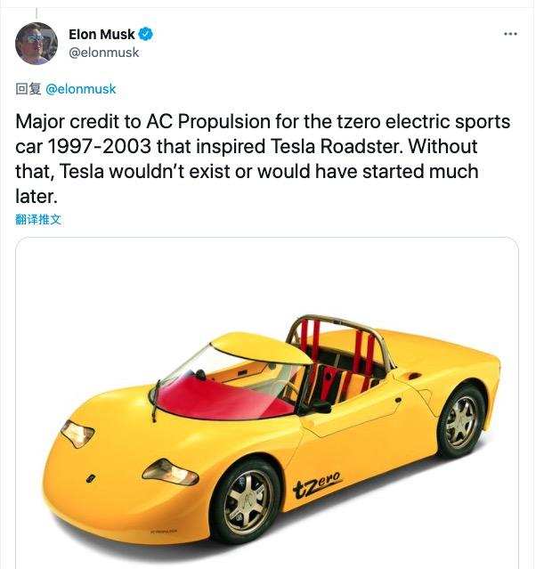 马斯克入主特斯拉之后便紧锣密鼓地筹划将「Tzero」商业化,这才有了后来的「特斯拉Roadster」。可以说Tzero是Roadster的「原型车」,也是特斯拉品牌的「引路人」。马斯克本人也在2018年12月发推写道:AC Propulsion公司的Tzero启发了特斯拉Roadster。如果没有ta,特斯拉不会这么快出现,或者根本不会存在」。