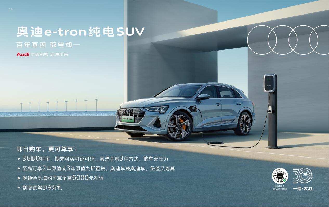另外,目前购买奥迪e-tron的用户可以享受到奥迪提供的36期0利率分期购车政策,综合用车成本低至7975元/月。同时,奥迪还提供3年指导价40%的残值保障,期末可买、可还、可延期,灵活处置。除此之外,奥迪e-tron还提供易选金融,真正做到了购车无压力。换购车主至高可享2年原值或3年原值九折置换服务,奥迪会员增购车辆可享至高6000元礼遇。
