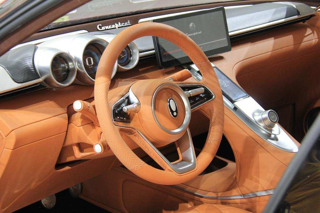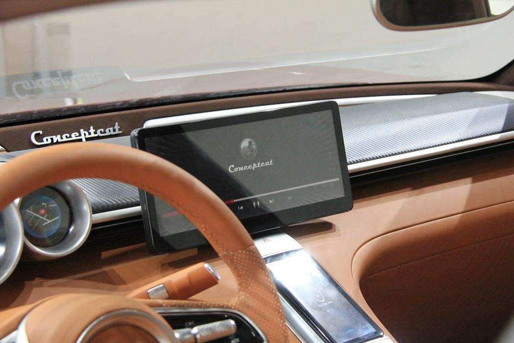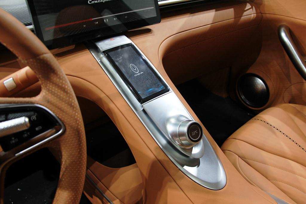 闪电猫的中控台区域目前只有横置的悬浮式显示屏,而在其下面的则是长条状的悬空平台,上面装配了一个面板和控制空调温度的旋钮,除此以外别无他物。如果按目前布局的话,面板预计将会具备绝大多数操作功能,甚至包括电子制动、驾驶模式、摄像头控制等。