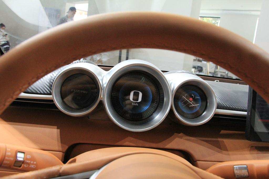 在前排设计上,闪电猫最显眼的就是这个“三炮筒”设计了,虽然里面都是高清数字显示器,但仍有浓厚的硬核气息。另外有意思的是,我们无论是从车门外面,还是在主驾位置看,中央“炮筒”中的时速数字都能清晰显示,颇有蒙娜丽莎微笑的神奇,不知道这是不是刻意为之的。