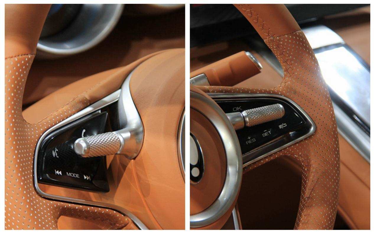 在闪电猫方向盘两侧的多功能按键区域上各有一个滚轮,驾驶员在车辆行驶过程中,可以根据喜好或是利手的习惯选择其中一个滚轮进行操作。如果量产时该功能可以保留且实际使用效果还不错的话,会是个加分项。