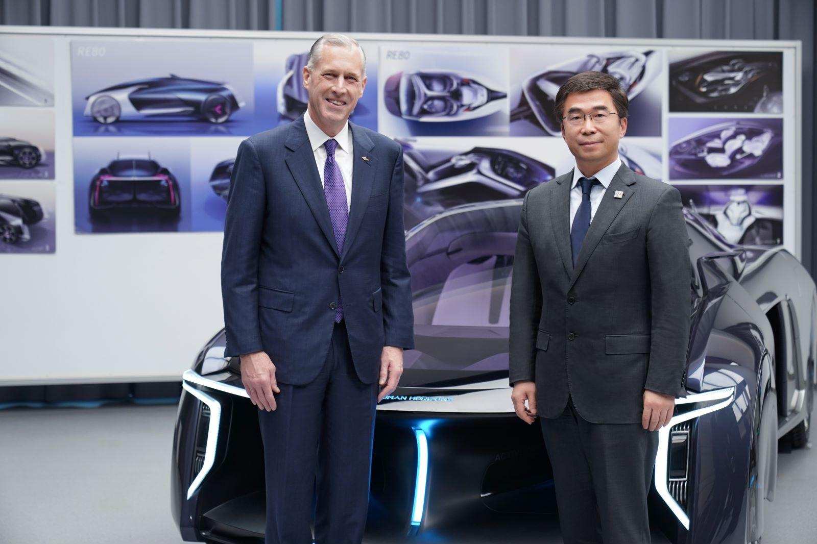 陶氏全球CEO吉姆·菲特林(左)2019年1月来华专程与华人运通高合汽车创始人丁磊(右)共商面向未来的材料科学应用,推动环保可持续发展。