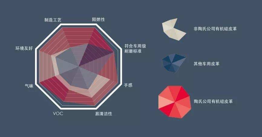 一张皮究竟有什么好『吹』的?发布会上,高合汽车展示的一张雷达图(上图)概括了 LUXSENSE™️有机硅皮革『八边形』全能的特点。总的来说,得益于有机硅的优秀化学特性(气体渗透性高、耐高低温、耐氧化、阻燃等),LUXSENSE™️有机硅皮革不仅具备独特的亲肤触感与细腻手感,更在耐磨性、耐老化、防污性、阻燃性等方面达到全新水平,抗褶皱、易清洁,性能持久优越,彰显始终如一的奢华风范。