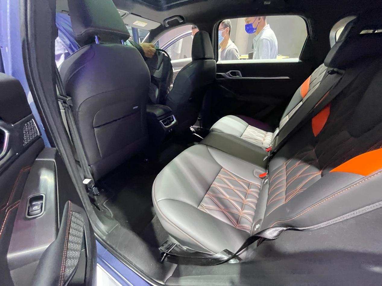 讲真,座椅设计可能是神兽全车为数不多的槽点,黑橘撞色带来的强反差运用「矫枉过正」,也就是橘色部分太多了。座椅上密密麻麻的橘色菱形格看着不仅闹腾,而且把高级感消磨殆尽,倒透着浓浓的「汽配城范儿」。如果能把橘色饱和度拉低一些,或者只在边角点缀,再或者把座椅材质换成 Alcantara,一下就有那味儿了。