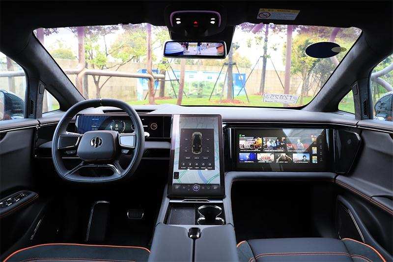 这是全球第一台量产的把门把手取消的车型。带着车钥匙走近车辆,门自动打车到合适的角度,有很强的仪式感。坐进驾驶位,轻点刹车踏板,车门就自动闭合了,这种人与车门的交互感很加分。我之前其实非常担心门把手取消后,用起来会不方便,但实际用起来,交互感非常友好。
