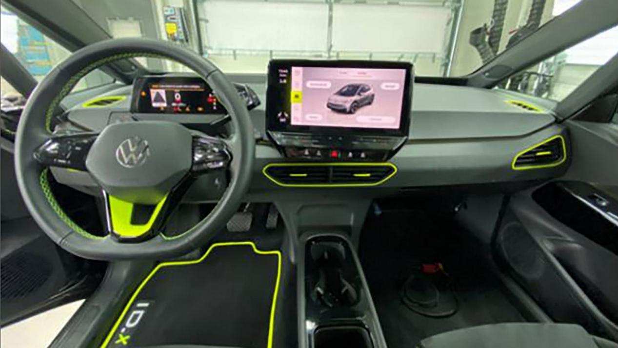 新车内饰采用大众家族式设计,配备大尺寸中控屏,相比标准版ID.3在空调出风口和方向盘上都增加了荧光绿色饰条。此外座椅采用桶型赛车座椅,并配有“ID.X”的刺绣。