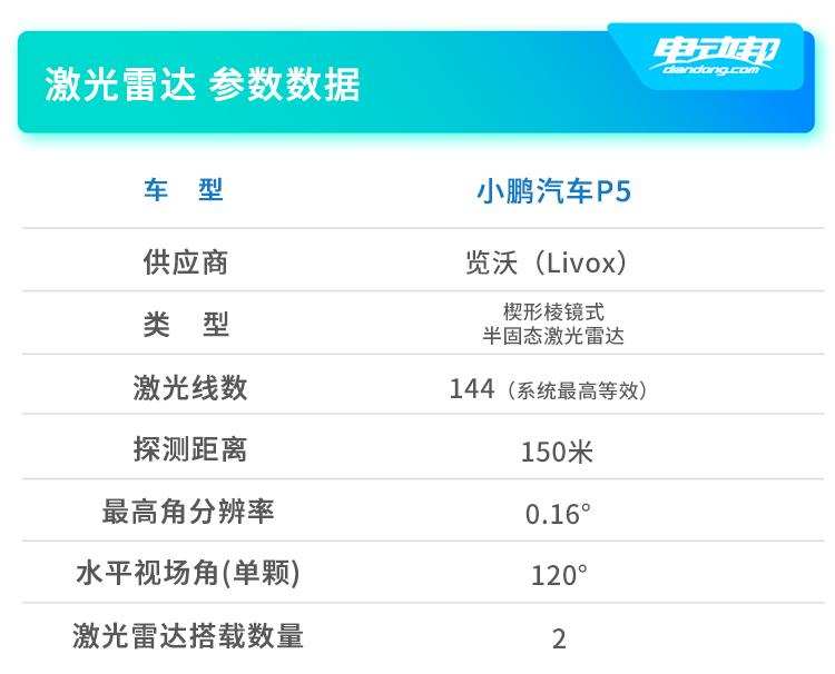具体说到小鹏P5,Ta的两颗激光雷达来自大疆的Livox览沃科技,单颗雷达横向视角高达120度,左右两颗雷达协同工作能提供150-180度的宽广感知能力,扫描能力达到等效144线点云密度。
