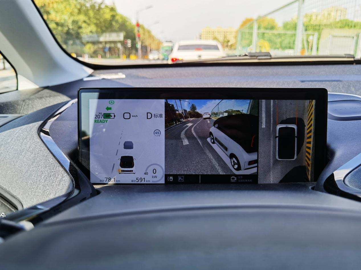 其次,邦老师还想表扬一下KiWi EV的360全景影像!除了可以通过方向盘一键开启之外,当你拨动转向灯也会自动开启360全景影像,有效避免了各种转弯和掉头时的视野盲区。