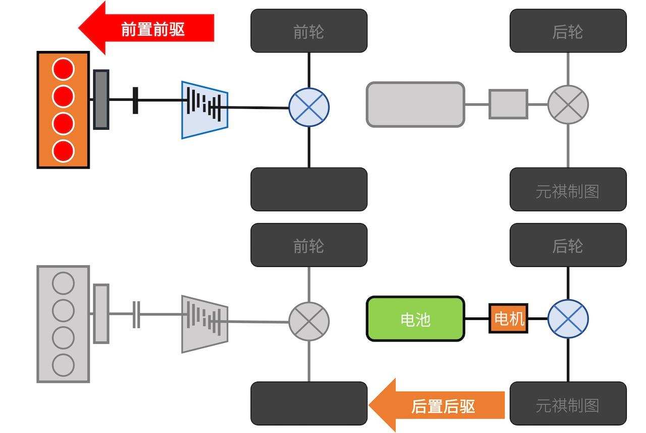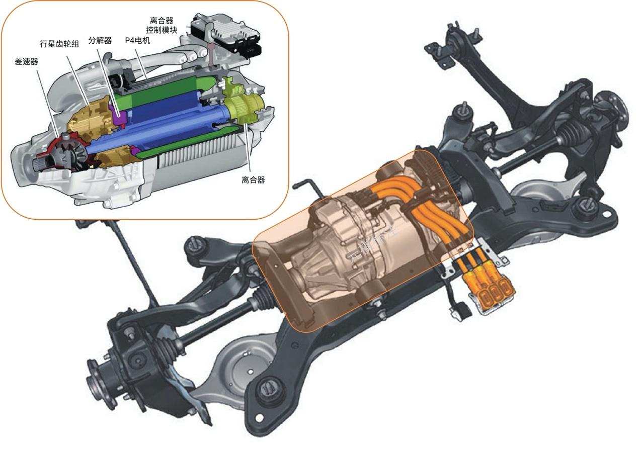 从「P4电机」的特点我们了解到,其可以通过链条或齿轮驱动前轴/后轴,也可以直接用轮毂电机驱动车轮,于是在传统汽车上有2个部件就有点尴尬了: