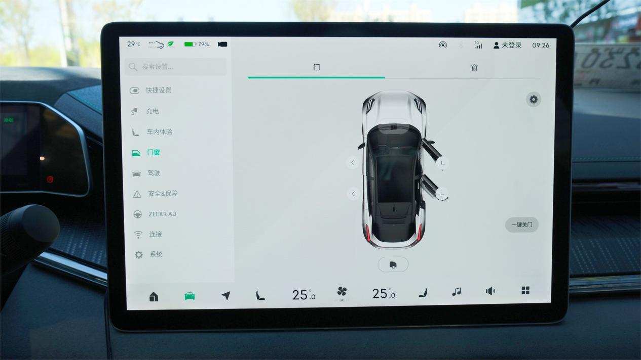 如果乘客下车忘记关门,别担心,中控屏还有「一键关门」。