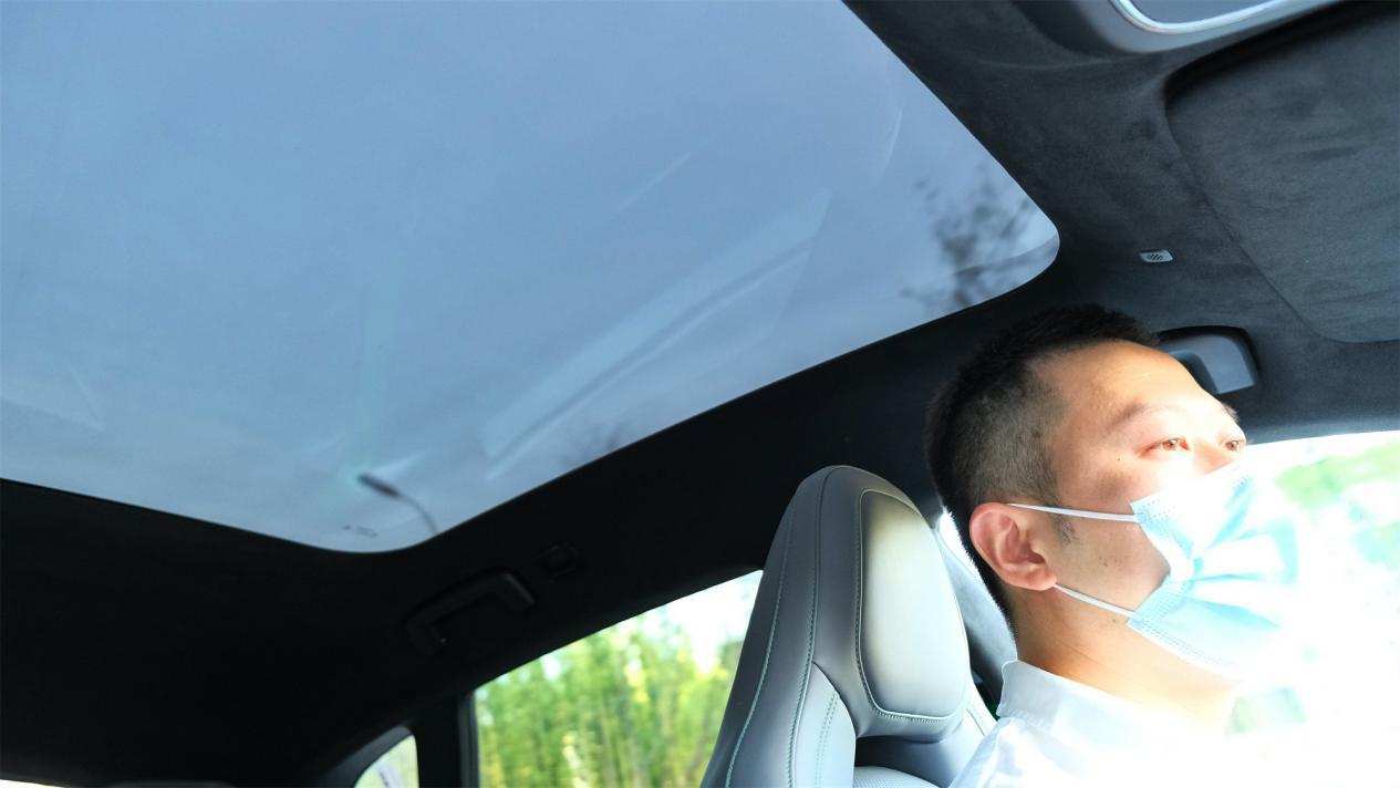 虽然试驾的两台车都没有选装「EC光感天幕」,但标配的天幕在隔热以及透光方面已经控制得足够到位,你们应该能看到大晴天下,葛老师的脸都过曝了,天幕还很暗,所以大家不用担心没有遮阳帘车内会很晒了。