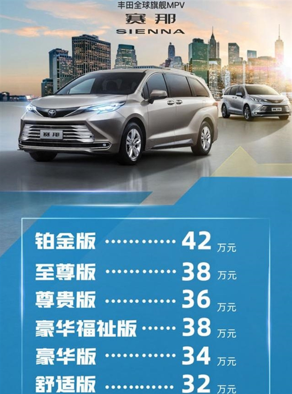 全新赛那在中国市场由广汽丰田进行国产,该车此前已经开启预售,预售价格32-42万元,该车将在11月初上市。