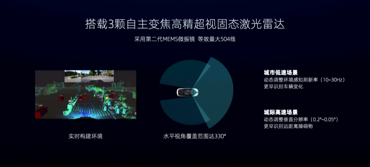 M7使用的固态激光雷达以第二代MEMS智能扫描芯片为技术核心,具有自主变焦特性,能够根据不同智能驾驶场景对环境感知的不同侧重,任意改变横向和纵向扫描速度,实现动态调节帧率和分辨率。对车主最大的福音就在于:杜绝加塞以及后方车辆突然上前带来的道路隐患。
