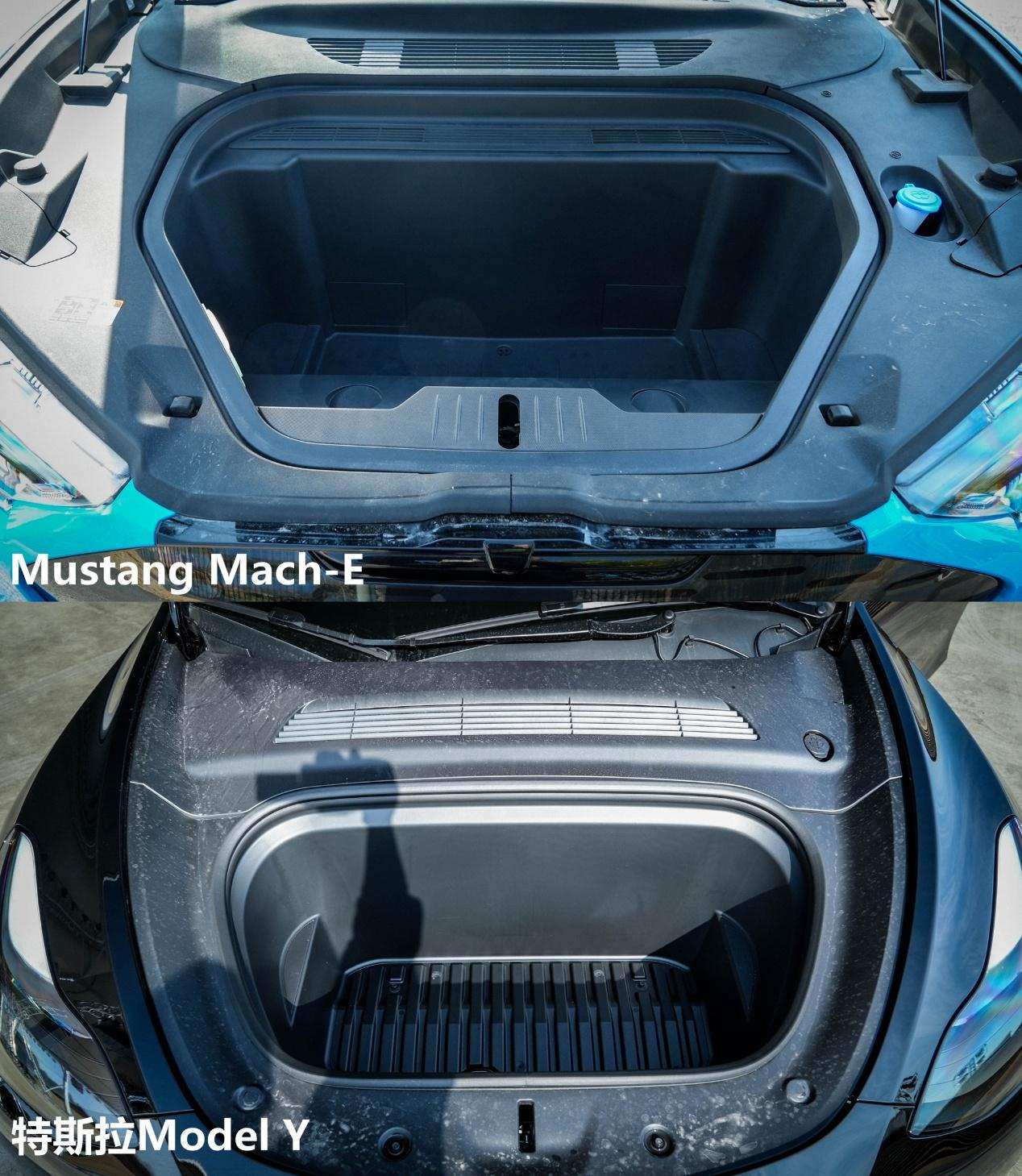 因为电动车的特殊构造,两台车的前备箱都没闲着,Mustang Mach-E的前备箱容积达到了100L,并且为了照顾野炊露营的需求,具有储水、排水的功能,实用又不失新意,朋友聚会,没有冰镇饮料怎么行。