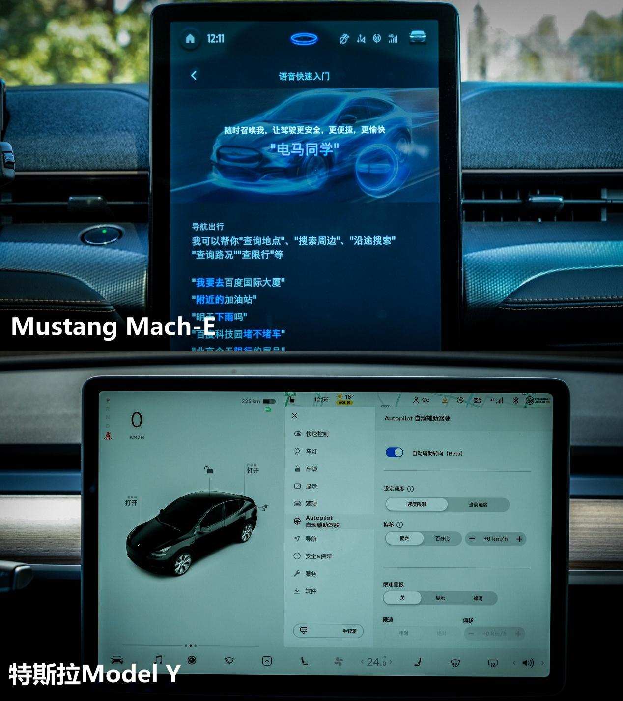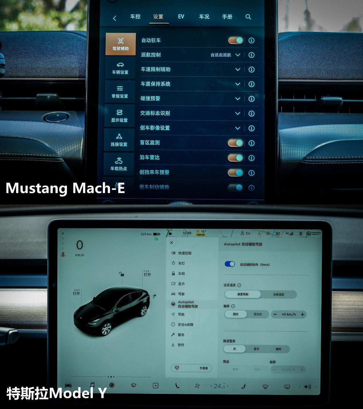 日常市区行驶路况下,两台车给人的印象都是『很好开』,转向轻盈,指向精准,女生也能轻松驾驭。相对来说,Mustang Mach-E的底盘调校更紧致,路感更清晰,车身跟随性非常迅速,特斯拉Model Y则表现得更『柔』一点。若是你追求『人车合一』的驾驶体验,那Mach-E优势会更明显一些,毕竟福特对性能车底盘调校功底那是相当深厚。