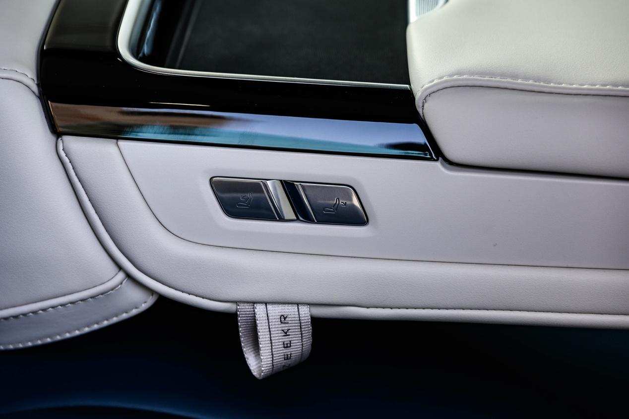 3005mm的轴距为车内带来了非常充裕的空间,本人179的身高在后排无论腿部还是头部空间都有不少的余量,没有不舒适的压迫感,并且后排座椅靠背支持电动调节,可以向后调整到一个比较舒缓的角度,后排座椅头枕同样多角度可调。