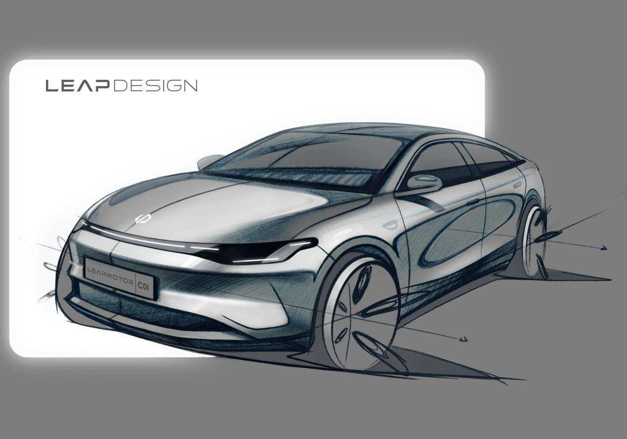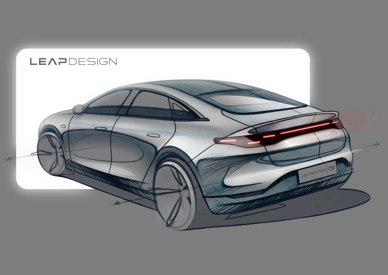 和零跑C11一样,C01的尾部也采用的是贯穿式的设计,不过在尾灯中段的下方有「LEAPMOTOR」的标识,以彰显其中大型轿跑的定位。虽然C01是溜背式的轿跑车型,但通过目前的手绘图来看,后尾门与后风挡中间明显做了切割,所以暂时我们猜测,零跑C01并没有采用更具「热度」的掀背式尾门。