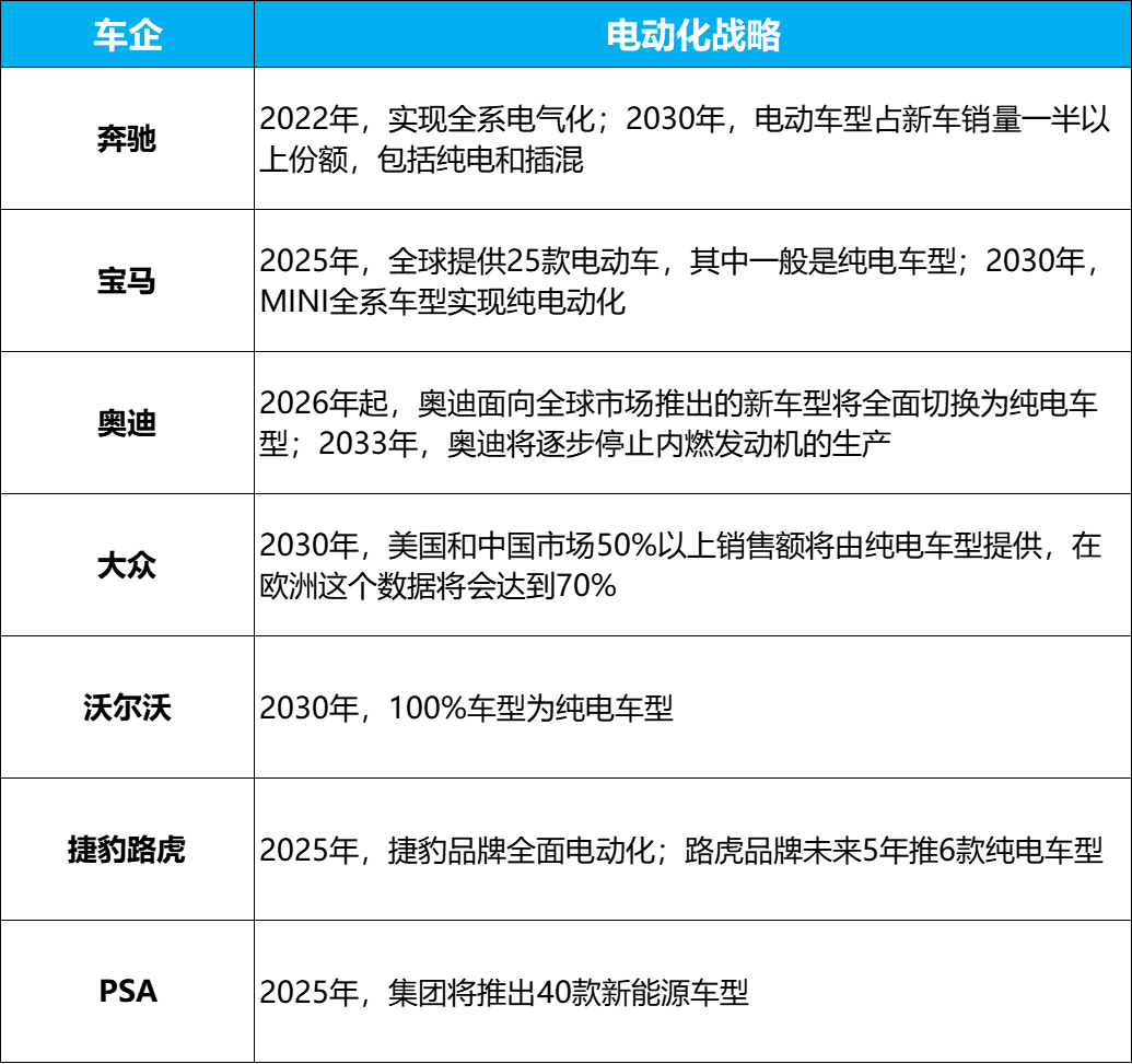各大车企的电动「倒计时」