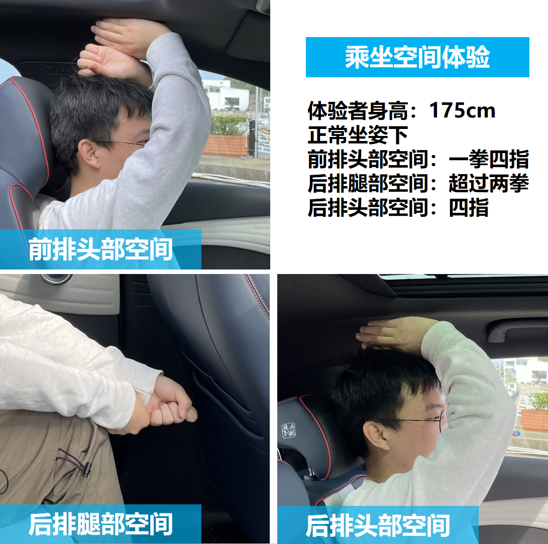 在前排调整到我175cm身高的合适坐姿后,头部空间剩余一拳四指;坐进后排,保持前排不变的情况下,我的腿部空间超过两拳,头部空间剩余四指。实测后证明,看起来不大的元PLUS的车内空间确实大有乾坤,在同级别属于优秀表现。在乘坐舒适性方面,前排的一体式运动座椅包裹性非常棒,后排地板中央为纯平,且中间座椅配有头枕,如此一来,中间座位的实用性和舒适性大大提升,满载五人不再只是短途专属。