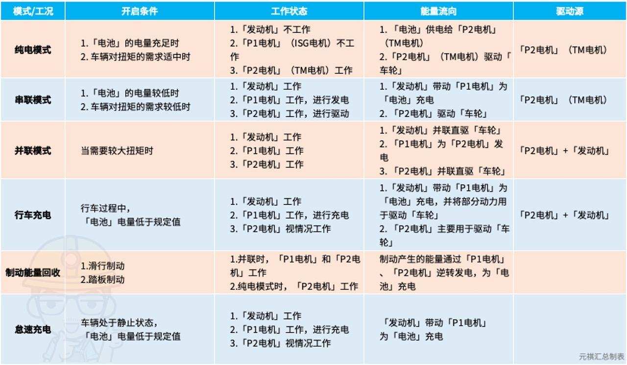 第一代上汽EDU混动系统工作原理表(仅供参考)