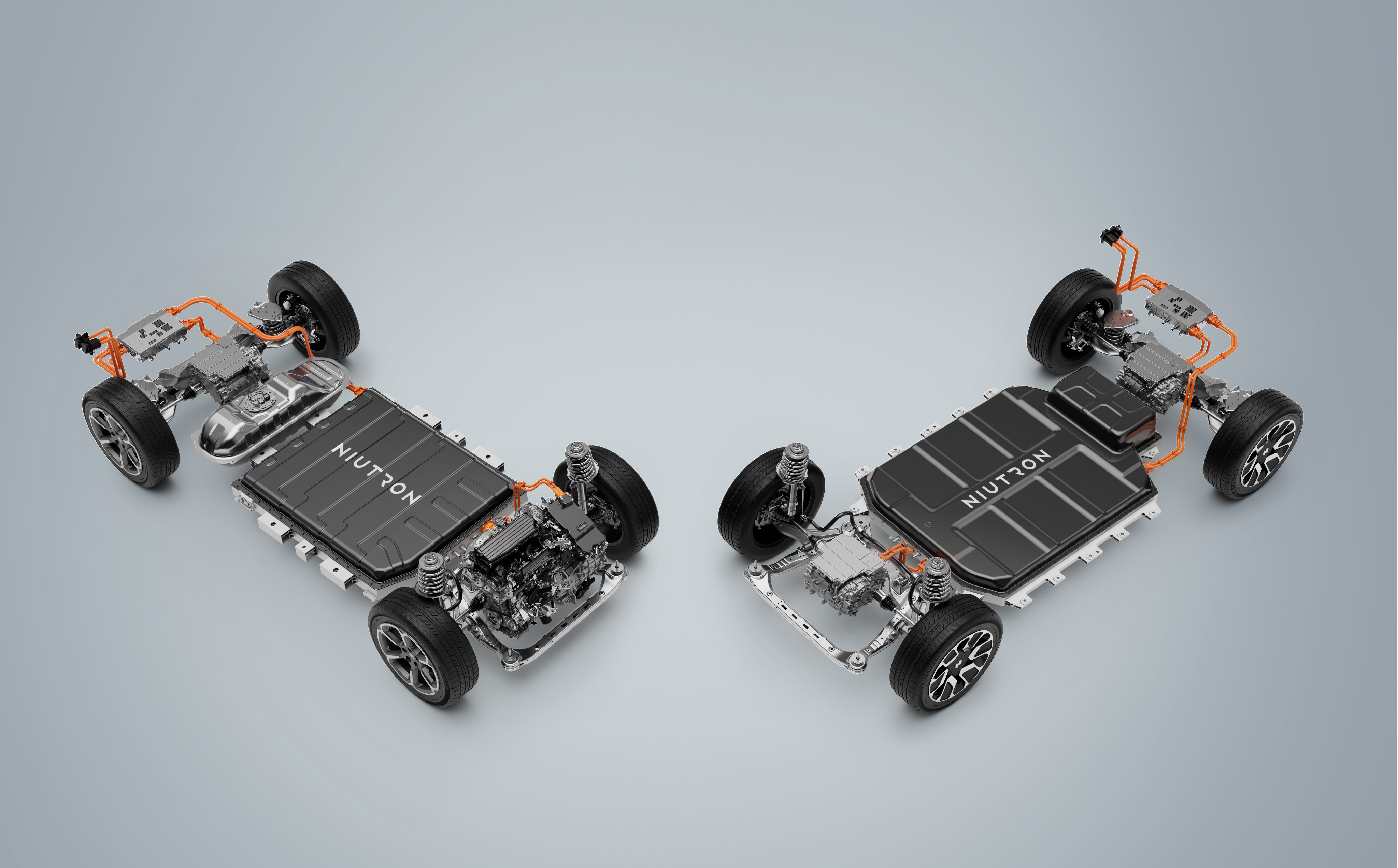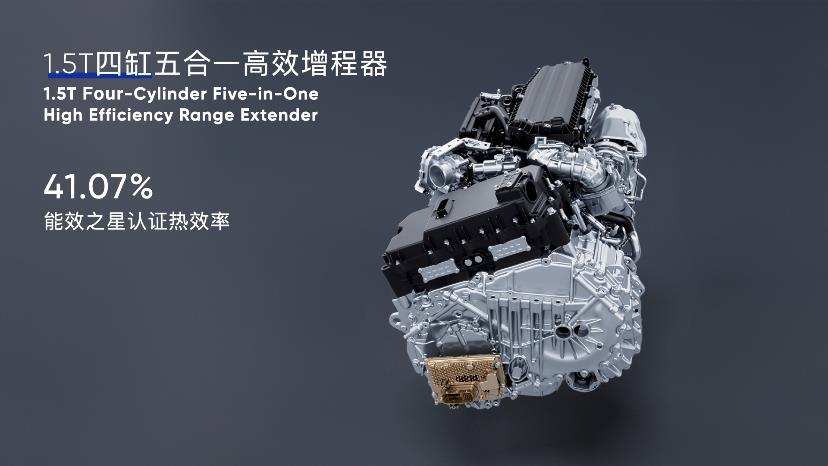 自游家NV增程版车型采用了一套1.5T四缸五合一高效增程器,经「能效之星」认证,内燃机热效率可达41.07%。增程版车型的前电机最大功率为130kW,后电机最大功率为,电机功率密度可达2.36kW/kg。