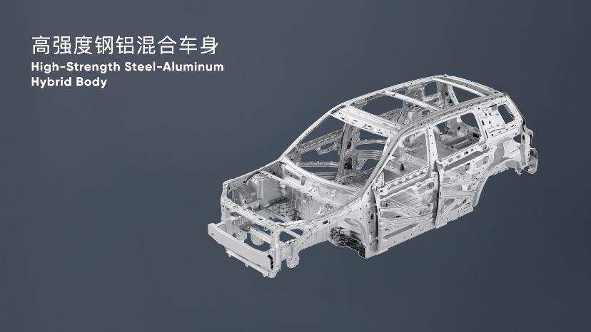自游家NV采用高强度钢铝混合车身,整车高性能材料使用超过80.1%,其中抗拉强度高达1500-2000MPa的超高强度材料占比35%。