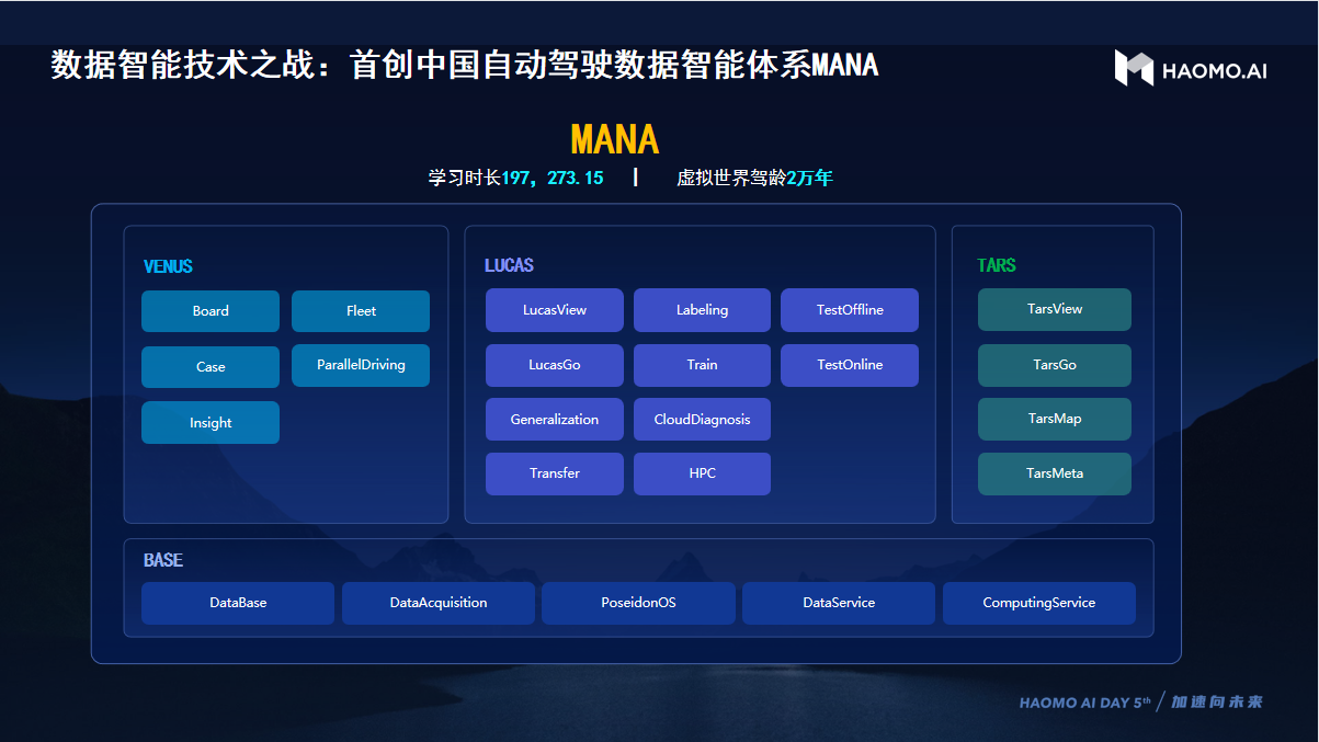 在去年第四季度的时候,毫末智行率先发布了自动驾驶数据智能体系MANA。该体系是一套海量数据处理工具,包含了算法模型、测试验证系统、仿真模拟工具以及计算硬件。我们可以简单地理解为它是一个具有海量知识的百科全书,或者是经验丰富的“老司机”。