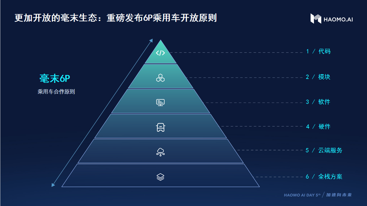 为了能够让自动驾驶技术能够更快地进入状态、服务消费者,毫末智行在乘用车自动驾驶领域推出了“6P开放合作模式”,从全栈方案到细枝末节的代码定制,毫末都欢迎有需求的企业进行深度合作。