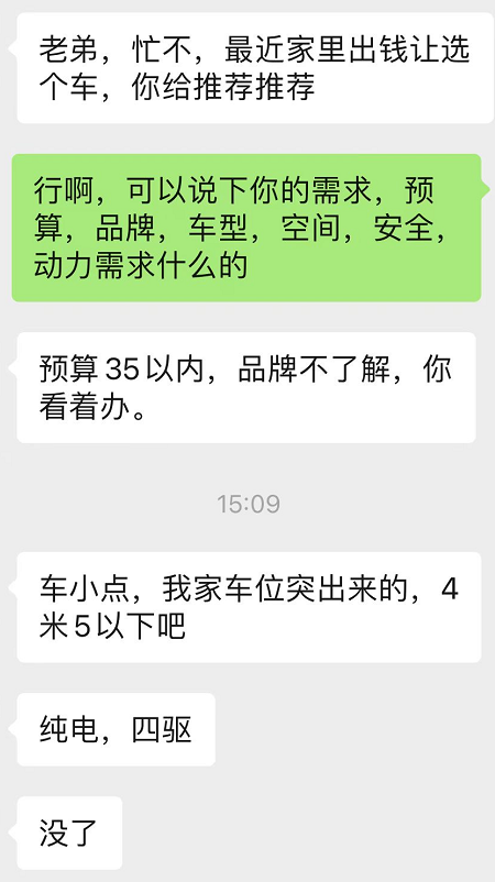 自打进入汽车行业以来,我们编辑部的各位老师都会经常收到各种亲朋好友的『求推荐』,久而久之已经习以为常了。不过前两天我们遇到一个让人印象深刻的推荐,因为第一次听到把需求具体到车长的。