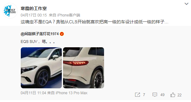 红利被EQA吃到了,但马上要出来的EQS SUV就倒霉了。以前C级叫「小S」的日子一去不返了,说不定以后S级都叫「大A」了……