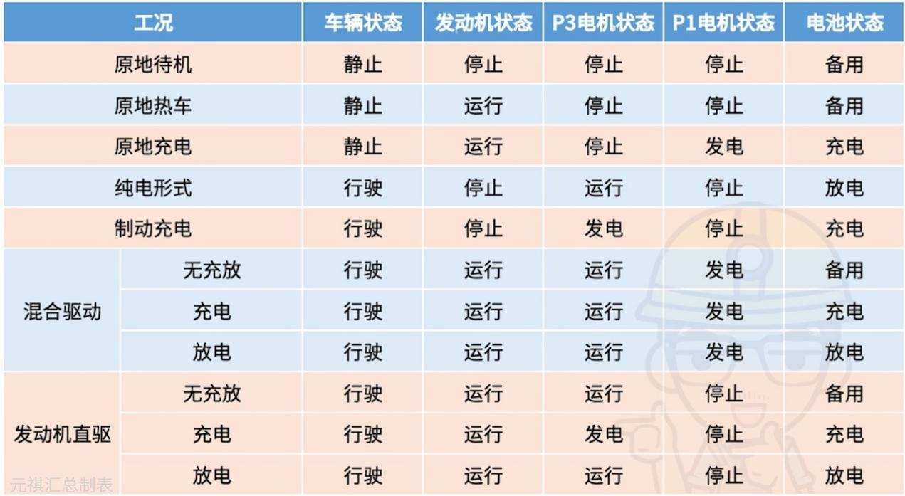 哈弗柠檬混动DHT系统工况和工作模式对应表