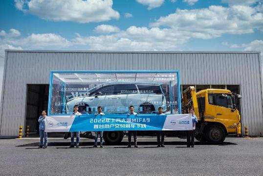 仿佛一台从未来世界驶来的科幻座驾,专属定制的MIFA 9被装进散发着蓝光的可透视『礼盒』内,从达沃斯论坛评选的代表工业4.0先进制造水准的上汽大通南京『灯塔工厂』出发,以极具新意的形式闪送给首位神秘车主,为首位车主打造出满满仪式感的同时,也让绿色多人智慧出行从『梦想』走进现实。