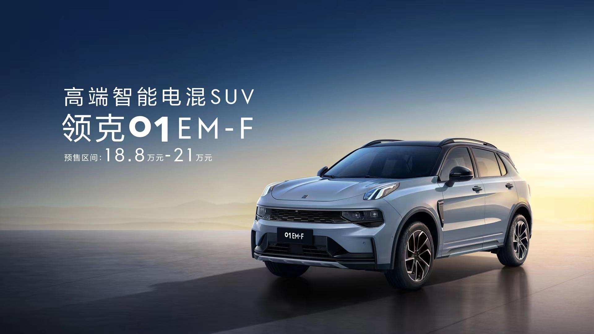 6月10日,领克01 EM-F正式开启预售,成为首款搭载Lynk E-Motive智能电混技术的量产车型。新车共有3个版本,预售价分别为18.8万、20万以及21万元,消费者可以在6月11日10点01分之后在领克官方商城预购。