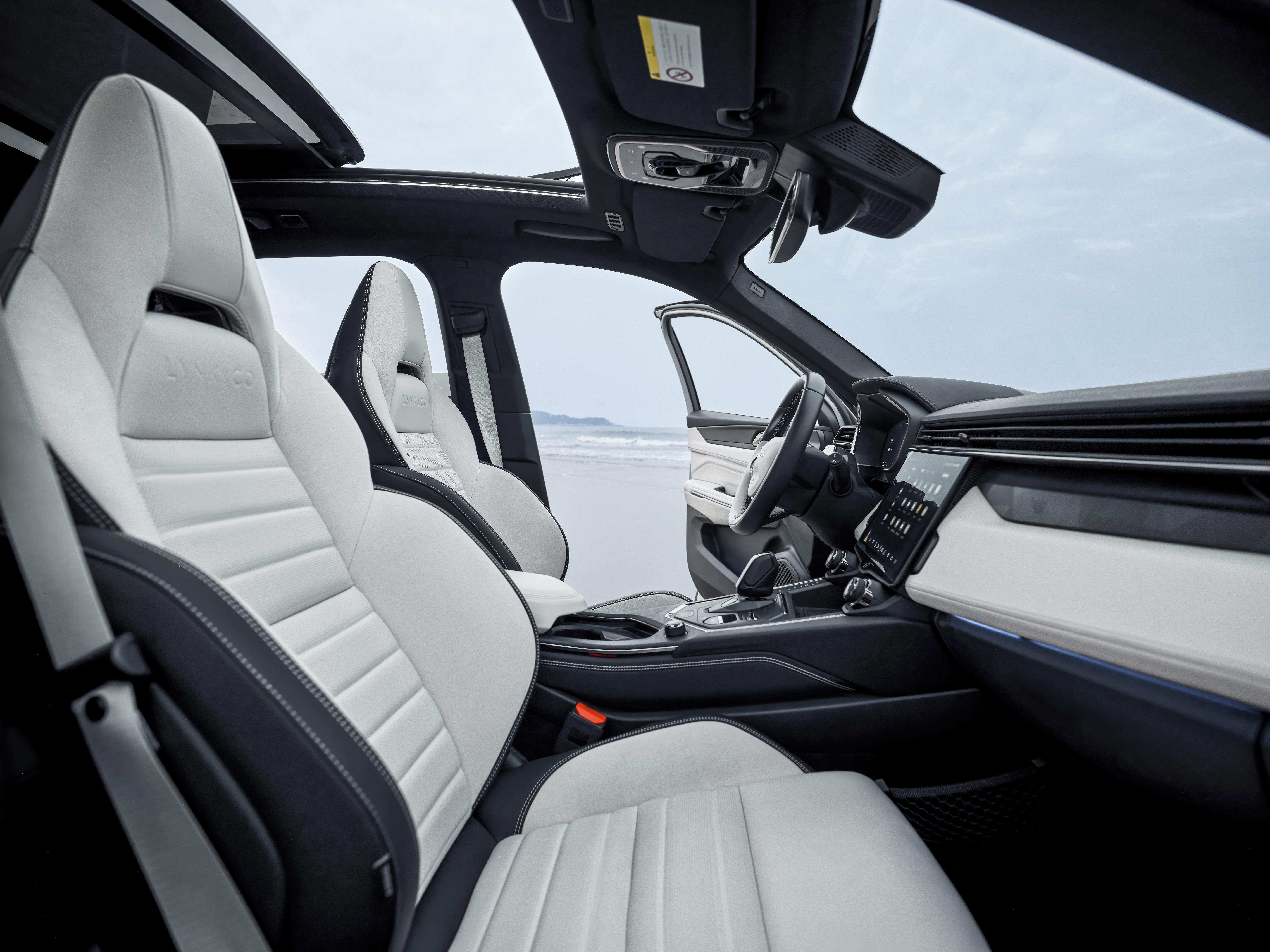 内饰方面,领克01 EM-F采用简约的黑色设计,晨曦版采用了极光白NAPPA真皮+NUBUCK翻毛皮黑白对撞内饰设计。同时,新车配备智能随动流光氛围灯可根据里程/来电提醒、欢迎/欢送模式等场景进行变化,独具个性。