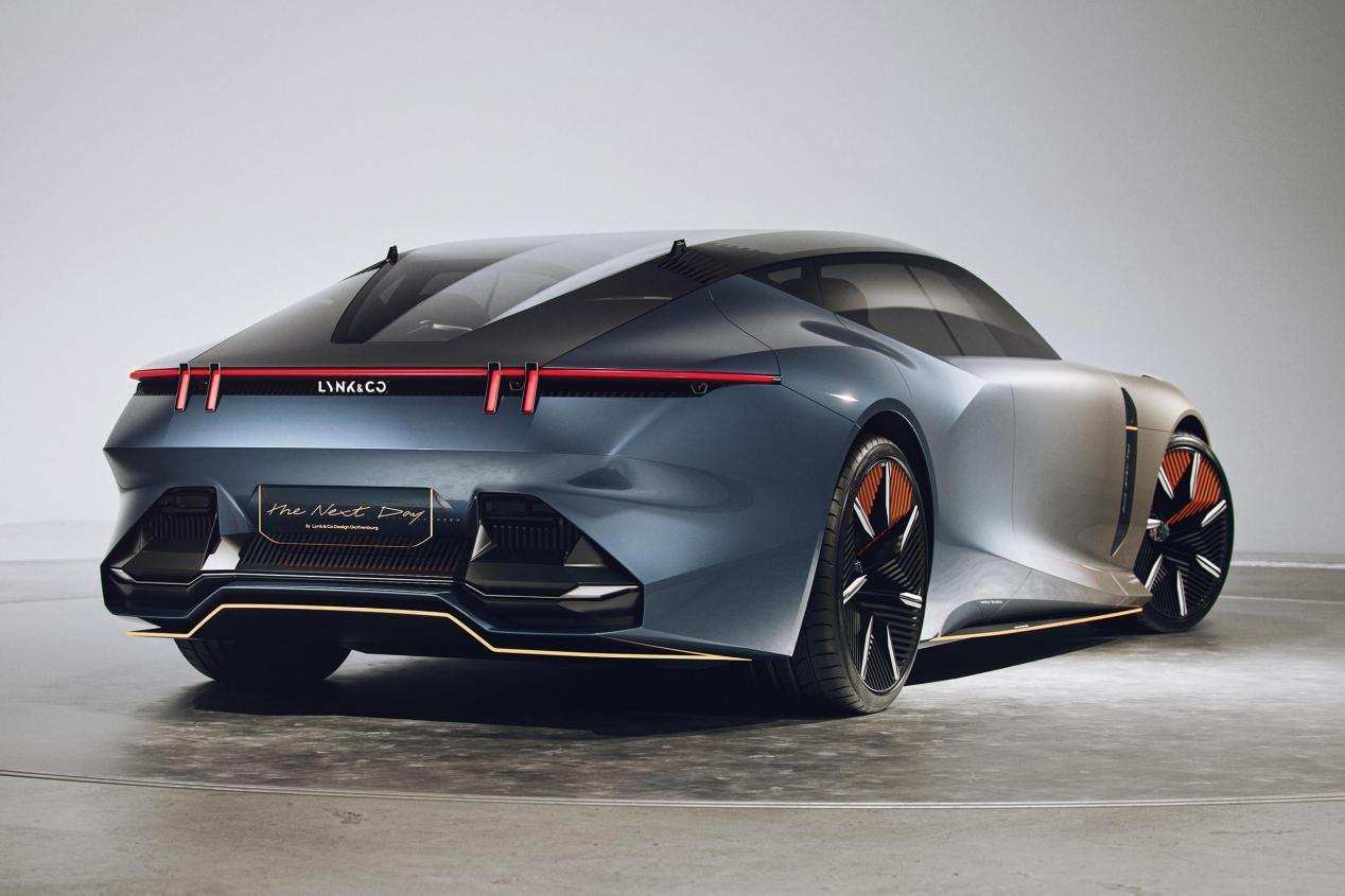 虽然是概念车,但从The Next Day身上我们也能看到不少领克的家族式设计语言,比如车头更加未来化的「极光」日行灯。另外The Next Day的车身采用了渐变涂装,尾部的空气套件设计极具张力,搭配溜背车身,运动感满分。