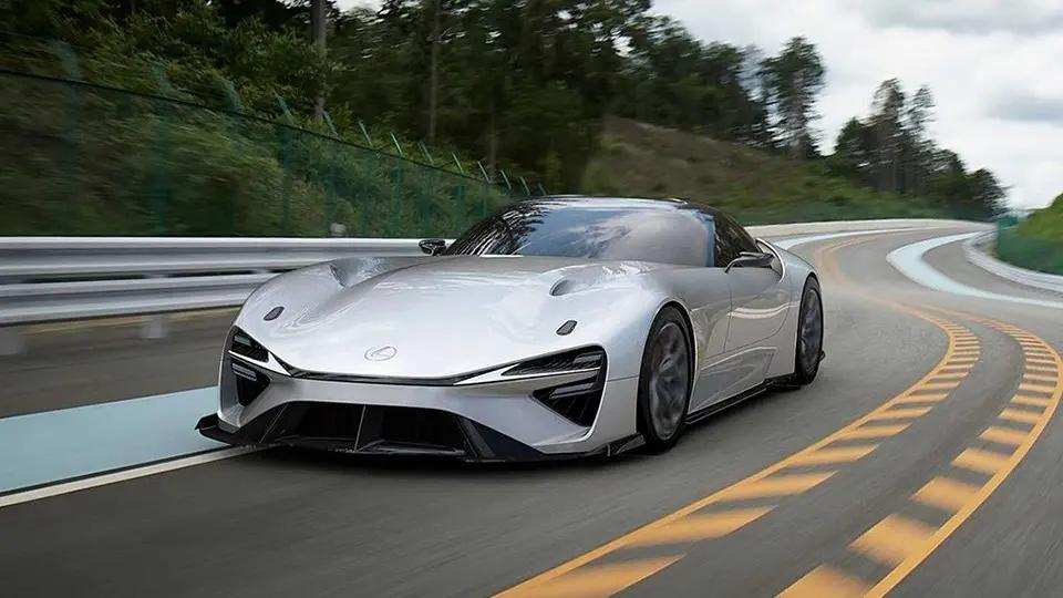 相比于上图中的平平无奇,单拎出来的雷克萨斯BEV Sport可以说颜值非常能打了,你能从图中读出些许雷克萨斯LFA和丰田Supra的设计风格,流畅并锋利。雷克萨斯BEV Sport的前脸棱角分明,『耐克』日行灯巧妙地融合在了月牙型的气道中。