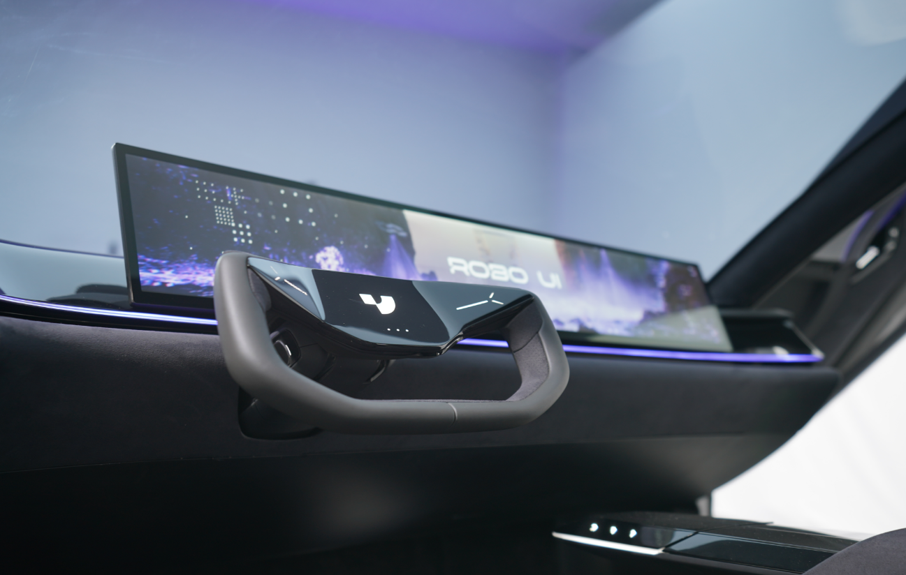 秉持未来主义设计思路,集度概念车ROBO-01不仅取消了全车门把手、换挡杆、左右拨杆等物理控键,更在方向盘、空调出风口、车外感知器等部件的设计中,采用了高度集成化的设计方案。此外,车内搭载的3D无界一体化超清大屏,是真正一体、非拼接的大幕,其贯穿主副驾的设计,将提供沉浸式视听体验。