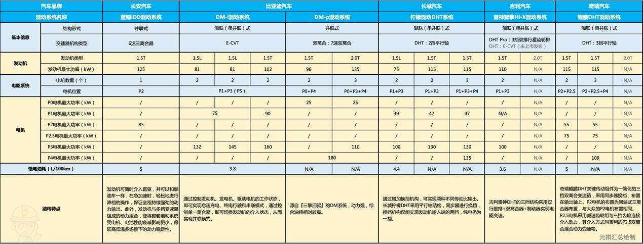 而目前市面上热门的几大混动系统,基本都可以用上面的两张表格进行更细化的分类(暂单指前桥,不考虑后桥的P4电机):