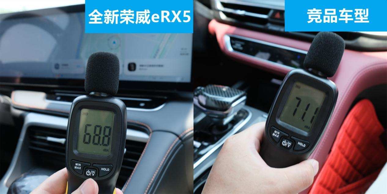 在听感上的区别主要来源于后续向80km/h的时速全力加速的过程中,此时两车的车内前排的最高分贝值分别为68.8dB和71.1dB,虽然差值不大,但人对高分贝的变化会更敏感,因此相对之下,第三代荣威eRX5的听感要柔和不少。
